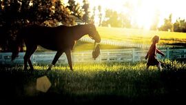 这段诗暗合了电影中另一个频频出现的词“king”:电影里面祖父对小孙女这样说道:“Racing is a game of king”;Cale在学校里面所写的那个寓言式的故事也是关于Castle, a magic horse and King。我们可以将这种重复简单地理解为对这种运动本身的奢华性的一种强调,但是从更深的含义看来,赛马文化本身是和骑士文化、贵族文化是联系在一起的。电影里面的King其实是代表了精英文化中对精神世界具有高贵性的这一认知的肯定。