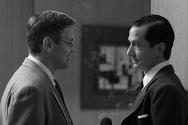 仅仅是一支烟时间的单口秀节目,电影却告诉我们,背后的工作量、审查制度的高压有多么沉重,相比之下,那一支烟从点燃到熄灭,只能越发让人屏气凝神,不敢轻易露出表情。作为被挑战一方的McCarthy其实从来没有在镜头里出现,他却无处不在,这是导演、编剧和表演共同搭成的有效舞台。