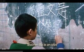 苏老师恰好就是小勇的语文老师,这天小勇上课捉弄同学,被苏老师罚站。放学后,小勇在一面墙上狠狠地划下几个大字:苏××是个×××。
