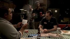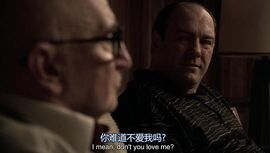 突然屋内只剩他一人,他看着电视里的景象,他坐着老式汽车(在第四季也出现过),里面出现的人都是在东尼的生活中起很大作用的人