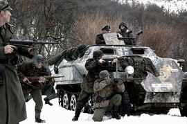 1944年,二战即将结束,德国纳粹军队变得愈发暴虐。美军士兵迪克(CorbinAllred饰)、斯蒂文(AlexanderPolinsky饰)、谢尔(LarryBagby饰)和戈登(PeterAsleHolden饰)在缴械后侥幸逃生,但迪克因厌战情绪困扰,常看到幻觉,分不清眼前黑影是敌人的身影还是死神的召唤。迪克 fluent in German and exceptional shooting skills make him the group's relied-upon leader. The group takes refuge in a wooden cabin, where they overhear a Nazi情报 about a critical military deployment. Acting swiftly, they rescue a British pilot, Captain Winley, who carries vital intelligence that could alter the course of the war. Together, the five of them embark on a perilous journey to cross enemy lines, facing relentless pursuit and harsh winter conditions. Their mission is not only to deliver the intelligence but also to confront their own fears and doubts, ultimately deciding the fate of countless Allied soldiers.