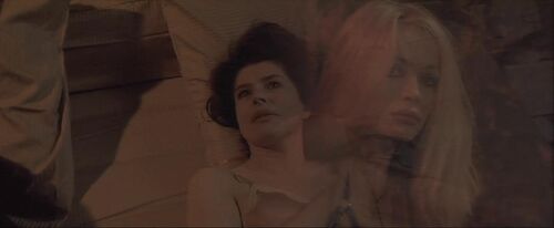接下来的一幕中,玛琳娜告诉凯瑟琳自己在工作中达到了高潮,而这是先前从未发生过的。这是又一次对凯瑟琳的引诱与挑逗,同样也是娜塔丽的自我表露——高潮为虚,而爱为实;偷情伯纳为虚,而倾心凯瑟琳为实。我们可以将这句话做这样的转化:玛琳娜爱上了她的顾客,而这是在她的工作生涯中从未出现的情况。配上玛琳娜此时的真挚眼神与若有的笑容,紧接着的那句“这都是你的错”也因此具有了双重的含义。这一场对话,可以视作玛琳娜用自己的暗语完成了一次表白。凯瑟琳并未读出这暗语,却暗自提起一侧嘴角,为玛琳娜达到高潮而欣慰,甚过对伯纳的愤怒。次日,她甚至自己买了一捧花,以犒慰自己的愉悦,像是在为玛琳娜庆祝。