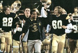 [有着先天性智障的詹姆斯(小库珀·古丁饰)从小到大都是众人嘲笑的对象,由于他总带着一个收音机,“收音机”就成为了他的代号。没事的时候,詹姆斯喜欢呆在汉娜高中体育场,久而久之,一个名叫哈罗德(艾德·哈里斯饰)的教练注意到了他。在又一次被人捉弄后,哈罗德帮詹姆斯解了围,不仅如此,他还当众宣布,从此往后,詹姆斯将会是他的橄榄球队中的一员。哈罗德的这个决定让队员们十分不解,但很快,他们就发现了詹姆斯身上所闪耀着的人性光辉。在詹姆斯乐观情绪的影响下,球队屡战屡胜,队员之间的关系也更加紧密。詹姆斯不仅走出了生命中的灰暗地带,还将快乐和希望带给了更多的人。这部电影通过展现詹姆斯与橄榄球队之间的互动,传递了关于包容、人性光辉和克服偏见的深刻主题。]