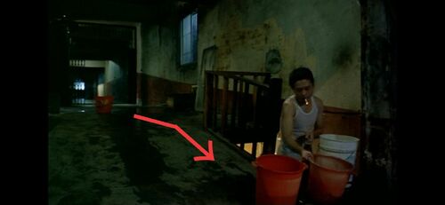 但它仍然存在疑点,比如最左边墙面缺失的绿色涂层。这时候,角色不紧不慢地走来,揭开了谜底。