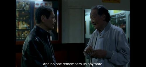 相似地,《龙门客栈》的两位主演苗天和石隽在银幕之外的戏院里扮演自己,也是一种“亲历”,当他们脱离角色身份进入电影院,才能够感知这种孤独,这种孤独来自“没有人再看电影了,也没人记得我们”,也来自再也无法以角色的身份亲历银幕空间,而只能以观众的身份静观银幕空间的感伤。