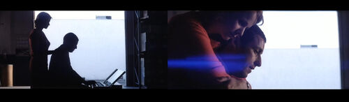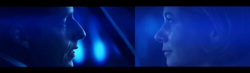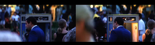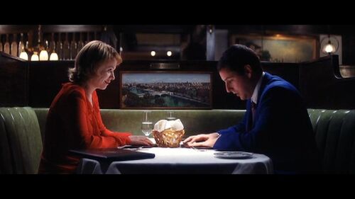 全片中这个镜头对光晕的使用最具有目的性,光晕是渐渐出现并增强的Lena走进公司仓库,Barry正坐在一架小风琴前弹奏;Lena从后搂住Barry,说:“So here we go”——两人的情感关系已进入下一个阶段。光晕从画框左侧再次出现。全片结束