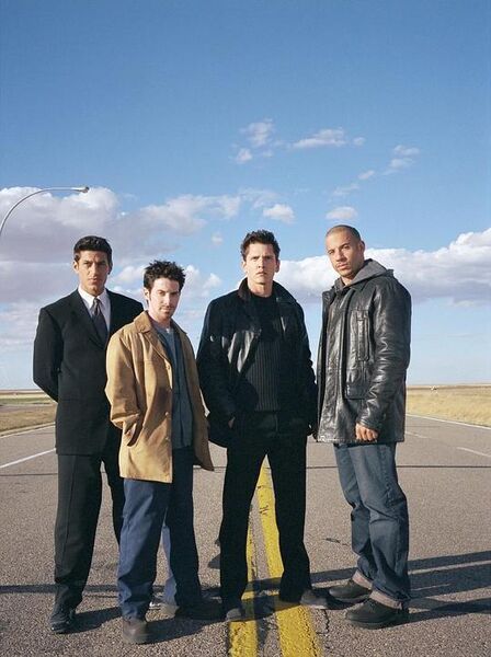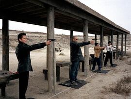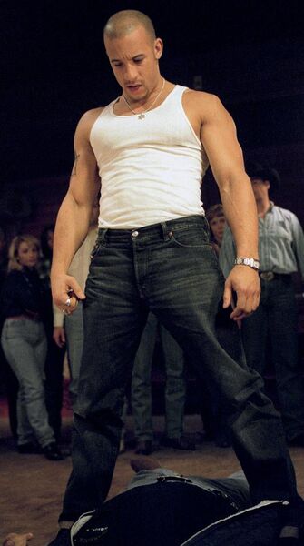 跑腿打杂的Johny到了,肌肉男Vin Diesel扮演的Taylor手持钢钎,伴着碎玻璃和惨叫声也华丽出场了。Matty, Chris和Taylor在蒙大拿某个鸡鸭不拉尿的地方和Johny见了面。前面三个人都戴着墨镜,因为心事重重而眉头紧皱,看起来象Matrix里面的三个Agent。但仔细一看,三人的墨镜和各自的装束倒配得很讲究:一个是花花公子,一个是光头打手,另外一个没什么特色,但正如那个关于鹦鹉的老笑话:中间那只什么都不做,但另外两只叫他老板。