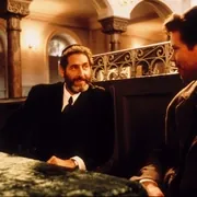 豪斯的形象极具蛊惑力,一袭黑袍,表情阴冷,目光锐利,直刺所有人的内心。他看得见弱势平民的无助和欲望膨胀者的野心,于是把自己扮成有神秘力量的预言家来迎合和控制他们,他在戏院里所鼓噪起来的狂热崇拜,俨然另一个希特勒,而他的理想的确就是成为希特勒政府的内阁总理。当齐什因为爱情而愤然揭穿他骗人的把戏时,同时也揭穿了一个更大的谎言,他也是个犹太人。比起齐什勇敢的挑战,纳粹更加不能容忍他的欺骗和利用,于是,表演结束,惨死林中。豪斯的经历与匈牙利老导演伊斯特万•萨博的靡菲斯特相似,但后者始终不过是个傀儡,他却想成为主人,结局当然更惨。
