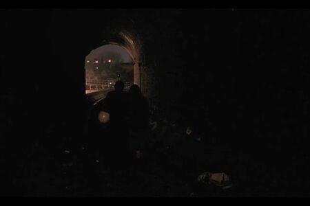 电影也通过剪辑替皮埃尔完成了“信仰的飞跃”。他与伊莎贝尔初次相认后从黑暗森林中出来的过程被完全省略了。随后两次走进隧道找伊莎贝尔的镜头,总是紧接着跳接到隧道内部反打,对准两个人一起走出来的背影。 伊莎贝尔仿佛内化的信仰,从不需要一个“沟通”的过程与出入口。