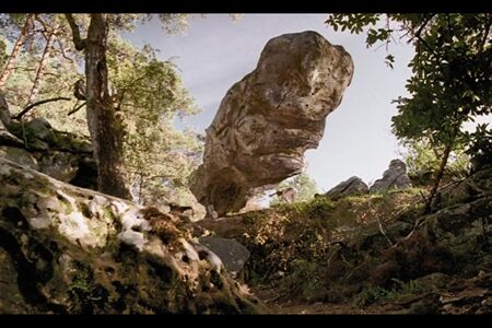 这时,他梦中的面孔出现在了现实中。在追逐这个信号的幻影时,一向小心的皮埃尔第一次骑车跌倒,白色的袖口被血玷污。他追随伊莎贝尔,走入黑暗的迷雾,在林间鬼影中穿行;昏暗到看不清的画面、不断变幻的运动轨迹、相机位置地不断调整并围绕着两人旋转——我们跟皮埃尔一起在森林中完全抛弃了方向。随着家中一个被封住的门印证了伊莎贝尔尖声独白的描述,皮埃尔相信,“信号”已经变成了真正的“宿命;而作为观众,下一幕我们马上也发现,正如皮埃尔预感中伊莎贝尔这个属于他的命运真实存在着,其实他小说中写的那个岩石也是真实存在的,并不是我们以为的皮埃尔的虚构!