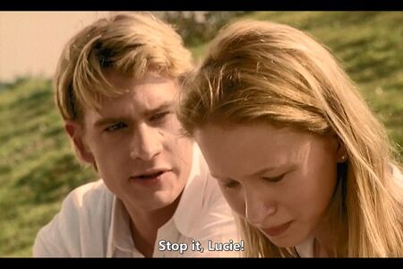 尽管一开始我们看见皮埃尔站在伊莎贝尔的一侧、关上露西那一侧的房门,随着时间过去露西依然逐渐占据了皮埃尔的注意力。她的病情——或者说皮埃尔体内光明衰弱后的自救本能,让他不得不产生了向明亮之处投诚的心情:“等到我写出这个作品赚到钱了,我们就搬走”。露西表示自己会去教书赚钱共同改变生活,显现出强大的生存意志;伊莎贝尔便也只能委屈地说,“我也会想办法带来收入的”,但她不是为了共同的生存,而是证明自己可以替代光明,毕竟之后三个人踢足球时,伊莎贝尔一脚把球踢到河里终结了游戏。