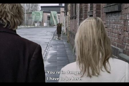 “真相在哪,伊莎贝尔?在哪?”仿佛作为对皮埃尔发狂质问的回答,电影的画面瞬间切到废弃的仓库内,伊莎贝尔在狂躁嘈杂的音乐中幽幽走着——卡拉克斯似乎在暗示我们,一个客观上黑暗又凉的外界确实存在。它始终在挠动着创作者对于经历一切、看见一切的渴望,催促着他们去揭开最终的真相与意义。但是,自光明的螺旋中心开始向外探寻的过程中,深入黑暗的离心力是难以控制的;展开的景观,又像是黑夜中的森林那样的无边无际。一切幽暗的真相与自我难以调和的矛盾产生共振,最终会让一个人自爆。