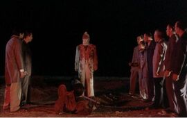 从地下里出来的人,是阎王爷,他要审判一切犯过真正罪行的人——拥有无穷无尽的欲望之人。更讽刺的是,他是被最没有负罪感的那个黑社会成员召唤出来的,所以我说他们这些你争我夺的人是自取灭亡。判官的审判很冷静,他一个接一个的击杀黑社会成员,之后打伤了山崎的腿,却对着山崎的头部连开无数空枪,转而又打出一颗子弹打死了本片杀人最多的男人。