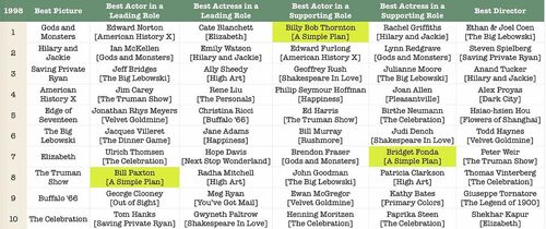 Sam Raimi’s A SIMPLE PLAN is a a pitch-black cautionary tale apropos of human nature, adapted by Scott B. Smith from his own novel, in a wintry rule Minnesota, a snow-covered crashed airplane with a dead pilot and a bag of $4.4 million in $100 bills is discovered by three men, our protagonist Hank Mitchell (Paxton), his elder brother Jacob (Thornton) and the latter’s friend Lou Chamber (Briscoe), and morality is soon discarded in favor of cupidity, the trio decides to keep the money (safeguarded by Hank) and divvy it up later when the dust settles.