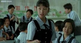 里面的校服,真的就是我们学校的校服,除了那个领结,没人会戴的.很漂亮吧!据老师说,当年全国都流行看花季雨季,我们的校服也出了回名.