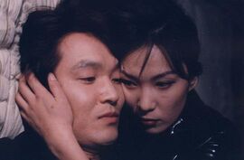 莫东跟美延的悲剧因子,不只是错误的开始,不只是那趟追赶不上的列车。有了大哥的翼护,莫东成为帮派分子,但大哥这一称呼也是难以逃脱的阴影。后面列车相会,仍然离不开这一称谓的影响。偏偏莫东有着正直信念,不计回报地付出,这就催促着悲剧的形成出现。这是一个不成熟男子的感情用事,他愿意为某种事业、某个女人英勇地死去。事实上,感情的纯真是一个人最初拥有的美好品质,因此也被理解为幼稚——纯真的付出往往要伴随着伤害。电影中充分体现为莫东对大哥的忠诚不二,对恋人的真心实意。相比之下,无论大哥还是美延,只能站在对立面,面对内心责难。
