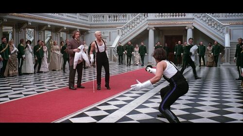 -最后一幕完全崩了,决斗和复仇的血腥落幕简直就跟耍猴似的。不是最后一幕,整部电影都给人感觉没有沉下来,非常浮躁,只是想拍一部眼花缭乱的现代哈姆雷特,甚至连一点原剧的悲剧气质也没有了。