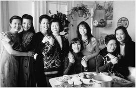 美国是这样一个白人文化为主导,多元文化并存的社会,中国移民如何承续中华文化的优秀传统,并吸收美国文化的精髓,从而建构属于本群体的文化身份是许多华裔作家始终关注的问题。谭恩美无疑就是这样一位超国界的具有多元文化的洞察者之一。无论是小说还是电影,《喜福会》都通过一种异质文化的交汇,为读者和观众“提供了一张网,一张由不同名族,不同文化之间的对话构成的对抗着的时空网”。○12《喜福会》表现的不仅是年轻一代对漂泊无根记忆的追寻,也不仅是华裔在文化身份认同困境中的迷茫和挣扎,而是通过对两种文化融合的期盼表达了华裔们既不愿摒弃和隐匿中国文化身份,奴颜婢膝迎合主流文化以挤进美国主流社会,也不愿以固守华夏中国的文化来对抗白人主流文化的意愿。整部影片传递着一种主张淡化文化身份界定,消除文化对立,从而达到全球化的多民族文化相互交融和平共处的信息。