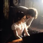 而贝因之于艾达,与斯图尔特正相反,恰恰是建立在这种自我的被认同之上。贝因粗犷、野蛮儿霸道,却反而激发起外表冷漠的艾达内心从未有过的激情。也许女人的矛盾就在于,其内心渴望的东西往往是其在外表上极力避免被察觉的,于是才要通过弹琴这个隐秘的手段委婉得表达出来,让表达的过程与效果显得如此绵长而缓慢。贝因指挥下人驮着钢琴走在崎岖泥泞小路上的那组长镜头拍得动人,他的沉默坚定之下是对艾达温柔的慰藉,他本能地通过琴声了解了艾达内心的一切。导演把艾达设置成一个哑女,目的或许正在于要表达出这种“穿越式”理解的难能可贵。影片中,艾达在弹琴,贝因钻入她宽大的裙摆,手指慢慢张开,细细触摸她的身体,躲在漆黑的裙子里,幽暗的光线弥散开来,暧昧而唯美。琴声流淌,情欲与音乐,爱与灵魂犹如两股细水流淌在一起,如此完美,让人不由叹喟。