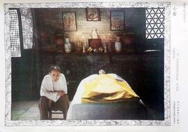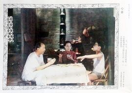 如果说,在《心香》中,京剧成为传统文化的重要载体,历史与现实相连结的重要媒介;那么,莲姑则是优美、温馨的传统世界的核心呈现。她以她独有的沉静、淡雅、信念和创楚浸染、柔化了现代世界的强光为古老生存所投下的浓重的阴影,同时负荷着一个边缘化的、或曰重写了的传统表述﹕那是一种认可,一份背负,一脉理解、原宥,一份内求于己、却不强加于人的执着和操守。她不是一个卫道士(是她变“年终祭祖”而为游园会,是她劝慰外公﹕“晚辈人的事,我们这辈是弄不懂了。”),她也不是一只自愿献祭的羔羊(当她得知分别四十年的丈夫已娶妻生子,便“没什么心事”了,准备与外公共渡晚年);以她为中心,影片组织起一个为情所滋养、为情所牵系的元社会,在京京的视域中出演了一段了犹未了的不了之情。这一次,是“情”、而不是“理”和“礼”展露一出片传统的沃土。本文以“情”之为现代都市的“拜金”、或曰非情的对立项。当莲姑怀抱着一份对丈夫的未了之愿、对外公不了之情悄然而去时,外公的守灵之夜,莲姑的灵床与画面上方神嵌上的观世音呈现在同一条垂直线上(对照此后京京的独白﹕“莲姑好。就象观音。”),在叙境中完成了莲姑与观音的语义对位。于是,莲姑的形象就不仅是传统美德、或曰文化的呈现,而且成了对现实苦难的移置与背负。