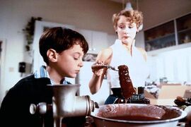 是的,昨天玩《使命召唤7》时在执行任务竟然有乡村音乐做背景,我当时震精了,这种杀戮感与一种病态的惬意感的确让我思考了超出游戏本身的东西。这部《parents》也是如此,音乐从始至终基本没断过,在平淡的时候音乐惊悚在惊悚的时候音乐平淡,这种反差尽管技法简单,可是效果依旧很赞,很赞的原因往往是现在的恐怖片除了血浆未免太过苍白,《parents》里面一直在试着营造一种氛围,这种尝试是非常好的,九十年代的日本恐怖片有几部都非常的成功。