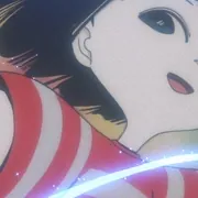 《迷宫·迷路》这一章节,透露着强烈的日本传统的风格和浓郁的法国风情,可谓是日本融合西化与坚守传统的最好体现。开始时,高度饱和的红色的屏风背景和类似樱花吹雪的花瓣,从构图造型都受着日本本土文化的熏陶。而其后西洋的家具摆设,小丑角色的出现,还有法文的马戏团布告,则是日本人融合西方文明的体现。在这种充满象征意味的背景里,一个黄昏,女孩和猫穿越这镜子钟摆所固定的时空来到了迷宫的世界。迎接他们的导游是孩子们都喜欢的小丑。用灵动的,没有实感的脚步,飘浮或者说是舞蹈,带着她们在迷宫的通道里穿行。