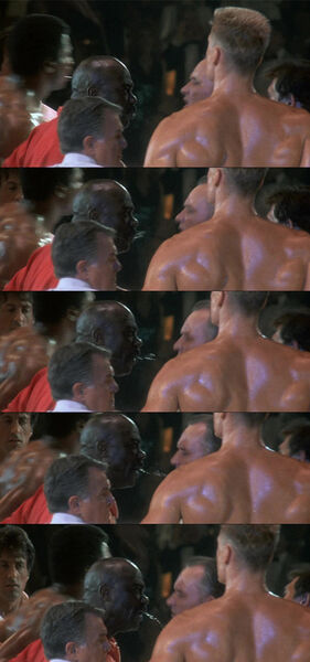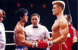 1985年,正值美苏两极争霸愈演愈烈的冷战时期,史泰龙自导自演的洛奇系列迎来了第四部。这一部影片延续了系列一贯振奋人心、宣扬美国精神的主题。故事围绕洛奇(西尔维斯特·史泰龙饰)的好友——前美国拳王——因挑战苏联研制的拳击机器人而遭遇不幸展开。为了替好友复仇并维护国家荣誉,洛奇决定再次出战。在出战前,他进行了精心的准备工作,深入自然环境,在艰苦的条件下进行刻苦的训练。最终,洛奇与苏联拳王及其拳击机器人展开了激烈的对决,为国家荣誉和友情复仇而战。