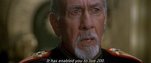 电影里的沙达姆四世有200多岁,看起来也年逾花甲。在小说里,他只有68岁,看起来只有30多岁。