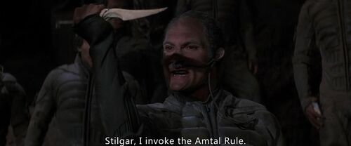 在电影里,斯蒂尔加的人发现杰西卡和保罗后没多久,贾米斯(Jamis)就因为和保罗决斗而亡。在小说里,他们俩的决斗发生在杰西卡和保罗回塔布尔穴地(Sietch Tabr)后。贾米斯找保罗决斗也不是因为保罗曾经打败他,而是因为贾米斯想验证杰西卡是否就是传说中救世主的母亲,保罗是替母决斗。