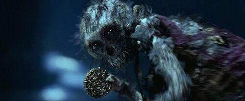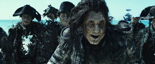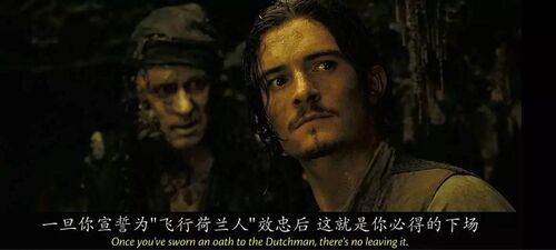 飞翔的荷兰人常年行驶在水中,船员会渐渐和船融为一体,直到债务偿还。所以飞翔的荷兰人号船员身上长满藤壶珊瑚礁等水中生物。这也是为什么开头亨利找到威廉·特纳,威廉满脸藤壶,对亨利说,看我的样子,你救不了我。