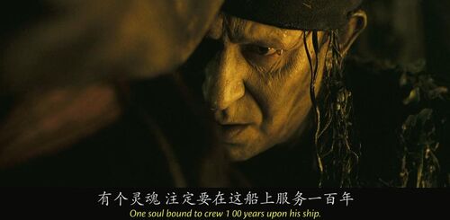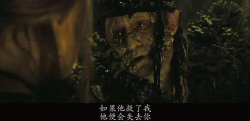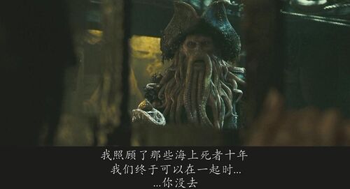 戴维·琼斯爱上了和大海一样变幻莫测的海之女神Claypso,并甘愿为她成为鬼船主人运送灵魂,十年才能登岸一次。