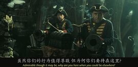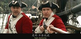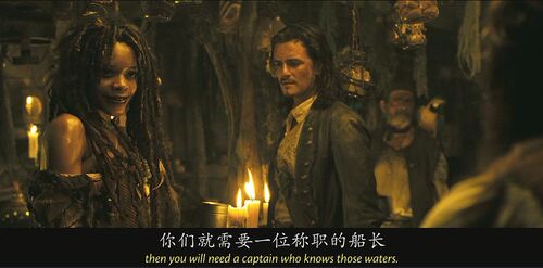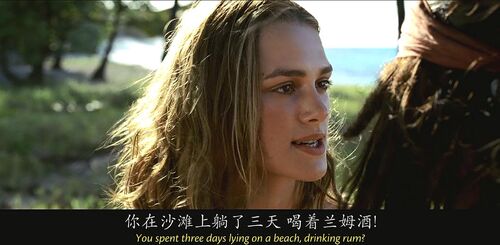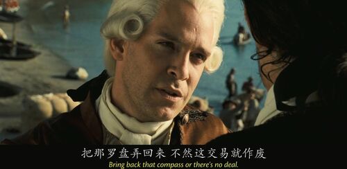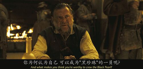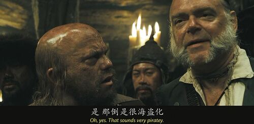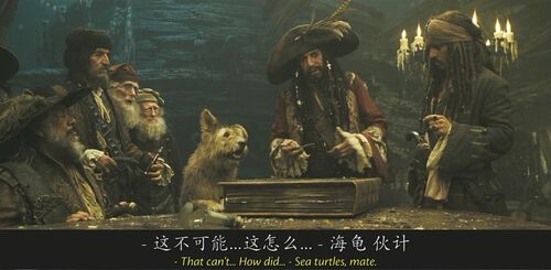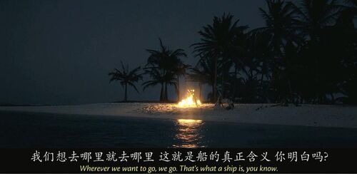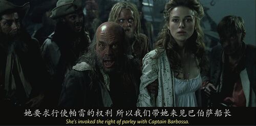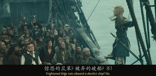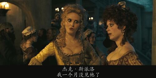 当卡琳娜在船上说自己会计时学horology时,没文化的海盗们集体懵逼,还有点不好意思,因为计时学和海盗们最熟悉的whore妓女发音非常接近。有个海盗说我妈也是,她都是躺着干活,时刻看着表。