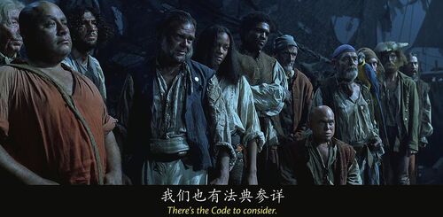 正所谓盗亦有道,放荡不羁的海盗们无一不遵守一部至高无上的海盗法典。这部法典可以追溯到很久很久以前,由羊皮纸装订而成的法典重达80磅(约70斤),现由杰克的老爸保管。海盗界成文的和不成文的准则都来自法典,比如,任何海盗都不可以使用威力强大的海神三叉戟。