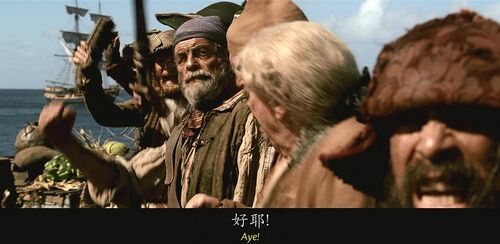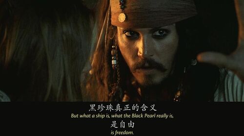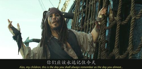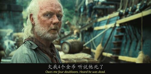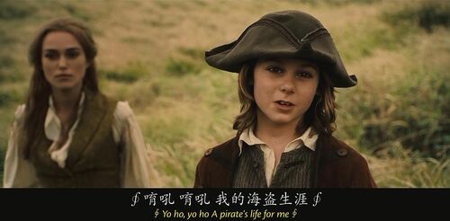 这就是海盗的生涯"A pirate's life"出现多次,这句话出自加勒比海盗中另一首经典的歌曲Yo ho(A pirate's life for me),这首歌贯穿了整个加勒比系列。