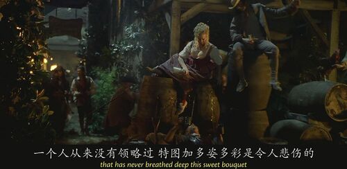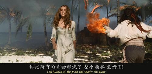 不甘喝酒等死的伊丽莎白,烧掉了杰克发现的秘密酒窖,当然,杰克原地爆炸,此后再遇到伊丽莎白,第一件事就是藏好朗姆酒。