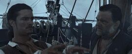 杰克是邪恶女巫的雇佣船长,因为拒绝运送并释放了黑奴,激怒贝克特,手臂上被印上象征海盗的P(pirate:海盗)烙印,并被关入监狱。邪恶女巫则被烧毁。