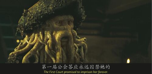 然而十年期限已到,戴维·琼斯却没有等来克吕普索。悲痛欲绝的戴维挖出自己的心脏,藏在亡灵宝箱中。并召集第一届海盗大会,将海之女神封印在女巫提亚·朵玛的身体中。而他也因为背叛克吕普索而受到诅咒,变成章鱼怪。