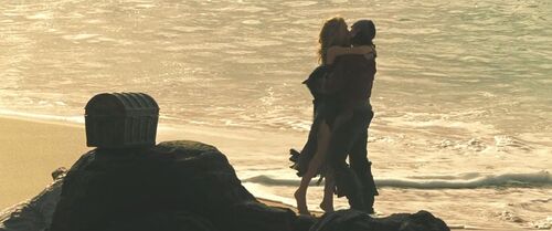 因为杰克船长,两人迅速走到一起。但因为东印度公司贝特克勋爵的捣乱,并没有完成婚礼。