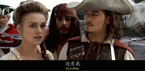 第一部中,少女伊丽莎白在船头吟唱,那天她邂逅了海盗的儿子,少年威廉·特纳。