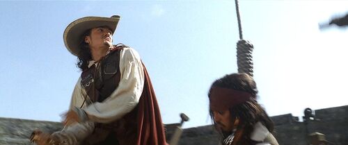 杰克神奇的出现在港口,遇到暗恋英国总督千金(伊丽莎白)的铁匠威廉·特纳,他正是比尔·特纳的儿子。杰克船长,威廉·特纳,伊丽莎白组成铁三角。他们归还了金币,解除了诅咒,杰克刺死了巴布萨船长夺回黑珍珠号。