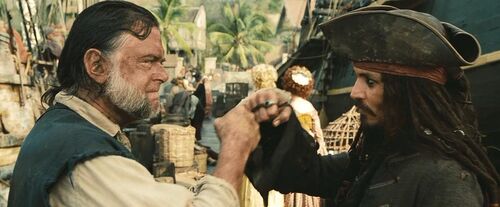 伊丽莎白和杰克曾被巴布萨遗弃同一个荒岛,伊丽莎白才发现,海龟的故事的真实版本不过是杰克在岛上喝了三天三夜的朗姆酒,遇到过往船只才得救。