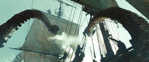 戴尔·琼斯召唤挪威海怪,吞噬了黑珍珠号和杰克船长。杰克被流放到戴维·琼斯的魔狱,一个没有死亡,但永受惩罚的地方。