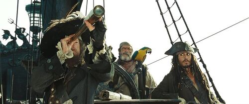 众人来到世界尽头,解救了杰克和黑珍珠号,返回阳间。然而控制了鬼船的贝特克勋爵要围剿海盗。