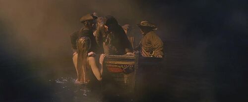 杰克逃出监狱,潜入水底试图救出邪恶女巫号,但邪恶女巫号已成为残骸。杰克在绝望的海底召唤出运送灵魂的鬼船船长戴维·琼斯Davy Jones。