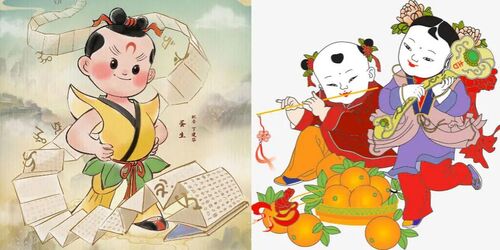男主蛋生参考了木版年画娃娃的形象,而反派小皇帝则大胆地用了雕塑和民间玩具的元素。