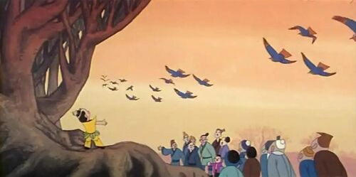 这时天上正好掉下一颗天鹅蛋,袁公用法术将天鹅蛋化为人形,取名蛋生。