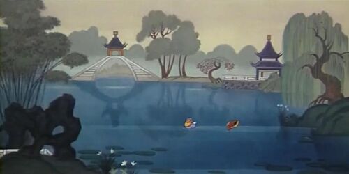 片中自然景观用的都是淡雅水墨绘制,可以明显看出水晕墨章的效果。