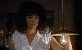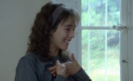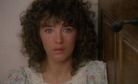 在精神病院里,艾莲娜身穿蓝灰色的长袖病号服,搭配深灰色发带,简朴素净,接近于无彩色的服饰显得单调无生气,和女主角永远禁锢于九岁的人格相契合,清冷绝望的感触油然而生。除此之外,影片对轮奸场面的描绘也值得称道,以来回晃动的(简易)吊灯光影来渲染强暴场景的触目惊心,摇摆的吊灯使得艾莲娜母亲痛苦的脸庞在黑暗与光明间徘徊,并且在母亲多达百遍的痛陈往事中一次次复现,深深烙印在艾莲娜脑海中。影片中,在“救火车”擦拭猎枪枪管时,艾莲娜追问:“你会在我受到伤害时使用它吗?”,随后情不自禁地用手轻推悬挂在面前的灯泡,注视着摆动的灯泡,创痛酷烈的回忆再次涌上心头。