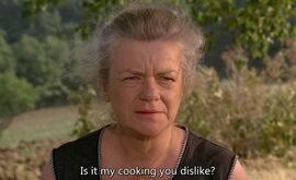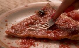 《杀人的夏天》采用了多视角独白的叙事方式,在一定程度上还原了原著,由于删减了不少细节,独白也并没有频繁登场,谈不上高度风格化,所以在整体效果上属于锦上添花,没有浓墨重彩的炫技展示。多视角叙事电影的鼻祖是黑泽明导演的《罗生门》,不过影片聚焦的是同一时间同一事件的不同视角转述。本片(以及小说)的叙事结构更偏向福克纳的《喧哗与骚动》,即通过不同人的叙述,从不同角度拼凑出一个人的生平事迹及心理活动,以期得到最完整的人物描摹。剪辑方面,本片获得1984年法国凯撒奖最佳剪辑,实至名归,在此举出三例相当惊艳的转场。艾莲娜在和老师吃饭时,挑逗对方,让她不穿内衣地进餐。在老师去盥洗室时,艾莲娜痛苦地用叉子拨弄着披萨,又独自陷入对童年阴影的回忆之中。镜头切入叉子压在涂满番茄酱的披萨上的特写,随后转到九岁的艾莲娜奋力挥动铁锹猛砸父亲头部的闪回。番茄酱——鲜血,叉子——铁锹,压住披萨——砸中头部,这是一个带有鲜明隐喻色彩的匹配转场,简洁有力。