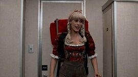 这是下楼的自动楼梯。瓦朗汀和温路易踏上楼梯,转身注视还站在原地目送的高曼和奥菲莉亚。